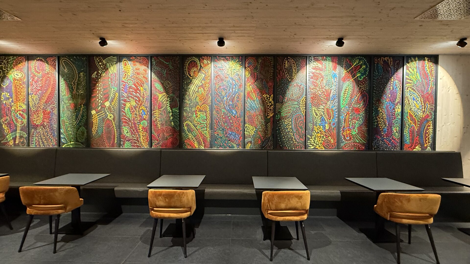 Für mich war das nie eine Frage des Entweder-oder. Meine zwei Professionen bedingen sich konkret, da ich Räume ganzheitlich entwerfe: von der Architektur über Farbgestaltung und Möbeldesign bis hin zur künstlerischen Arbeit. Daneben berate ich zu Wandbemalungen und zur Integration von Kunst im Raum.