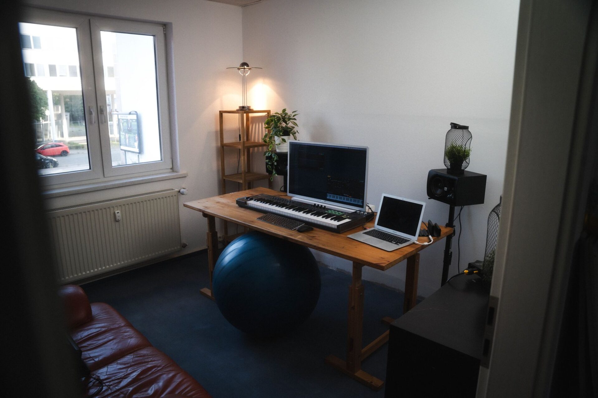 Es riecht nach frischem Kaffee, gemischt mit einem Hauch Farbe und Holz. Spuren kreativer Arbeit liegen in der Luft. Im Licht der Wintersonne flirren Staubpartikel, die zwischen Kabeln, Lautsprechern und Kunstwerken hängenbleiben. “Wir brauchten einen Ort, der wirklich zu uns passt“, beginnt Produzent NEPØ, während er auf einem gemütlichen Sessel sitzt, den die jungen Kreativen vom Vorbesitzer der Räumlichkeiten abgestaubt haben. Mit dem Techno-Kollektiv99 hat der Musiker zuvor in einem alten Proberaum nahe dem Kalif Storch gearbeitet – eine Art improvisierte Werkstatt ohne fließendes Wasser. Als die Miete dann plötzlich stieg, war klar: So geht’s nicht weiter. “Der Spirit hat einfach nicht mehr gepasst“, sagt er und schaut dabei kurz in die Runde. Der Wunsch nach einem Raum, der nicht nur Platz bietet, sondern auch alles, was man zur täglichen Kreativarbeit braucht, wurde immer größer. Doch die Suche in Erfurt war zäh: zu viele kreative Menschen, zu wenig geeignete Räume.