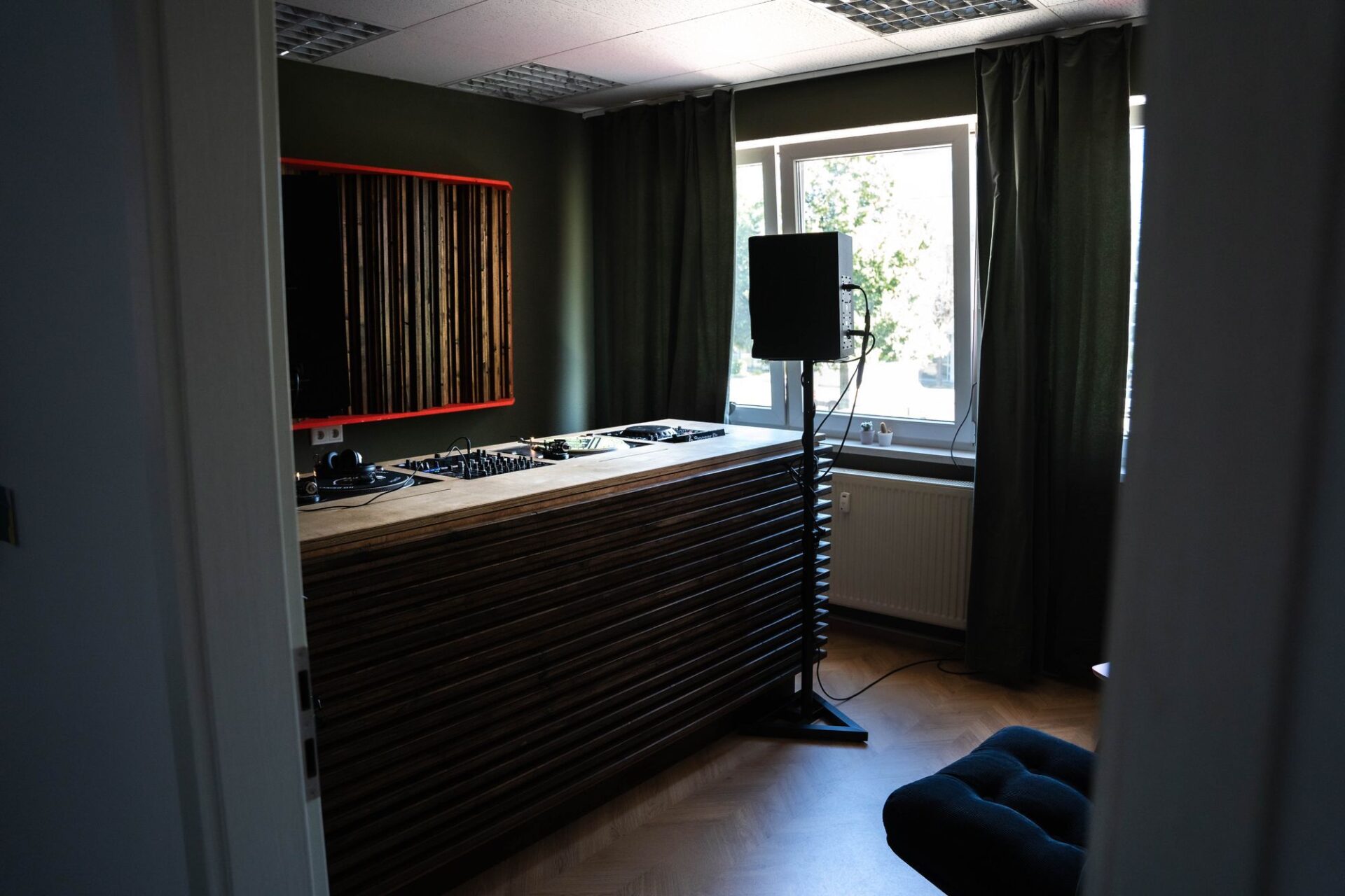 Wer durch die Flure der Etage 20 geht, merkt schnell: Hier ist kein Raum wie der andere. Jeder Bereich atmet eine eigene Energie, hat seinen eigenen Zweck und doch entsteht die Magie vor allem dort, wo Grenzen verschwimmen. “Für mich ist mein Raum vor allem ein Rückzugsort“, erzählt NEPØ, während er auf eine Tür zeigt, die leicht angelehnt ist. “Ich mach die Tür zu und dann ist klar: Jetzt wird Musik gemacht.“ Für ihn war irgendwann sicher: Nur Auflegen reicht nicht. Wer sich weiterentwickeln will, muss eigene Musik produzieren und das in einem professionellen Umfeld. “Der Raum hier in der E20 hat eine bessere Soundqualität als mein altes Zimmer. Das macht so viel aus. Und wenn ich mal Vocals brauche, gehe ich einfach zu Sophia rüber. Oder Jake kommt vorbei, setzt sich auf die Couch, hört mit und gibt mir wertvolles Feedback.“