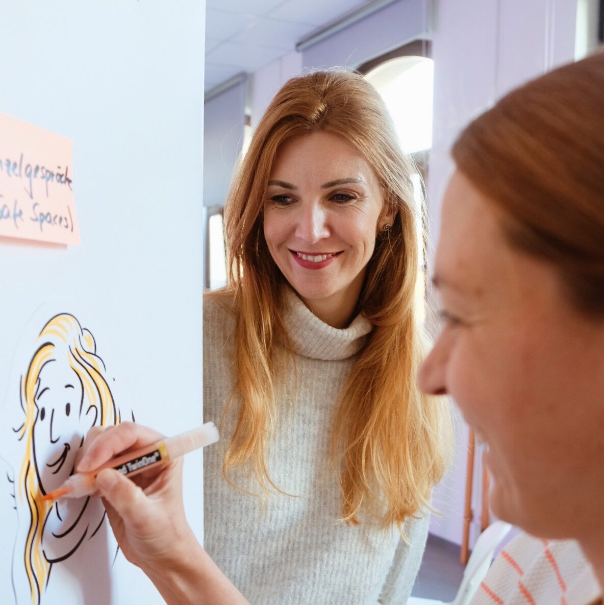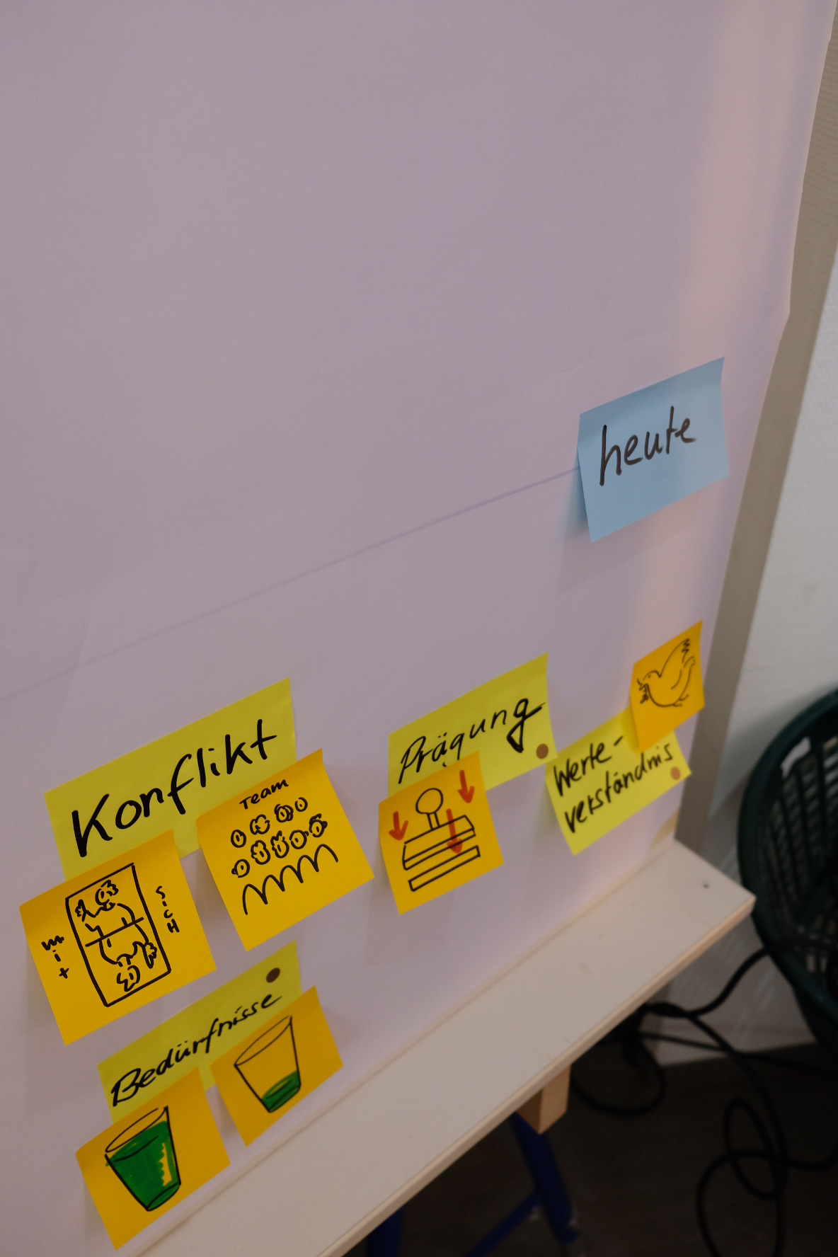 - Das Spezifizieren von Rollen, Stärken und Bedürfnissen aller ist extrem wichtig, um die Dynamiken im Unternehmen sichtbar zu machen und die Grundlage für zukünftige Lösungen zu schaffen. Visualisierungen, kreative Methoden, Interviews und Denkexperimente helfen dabei.