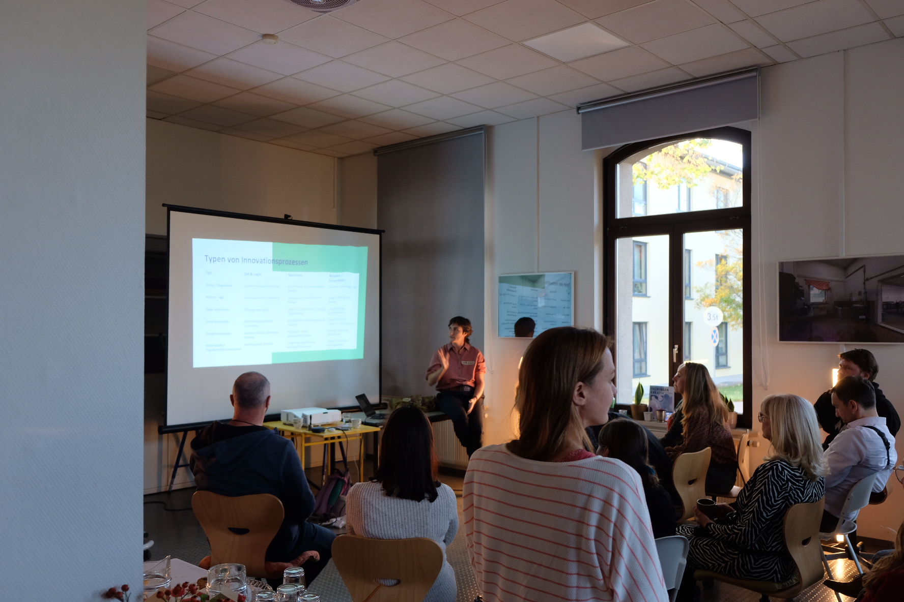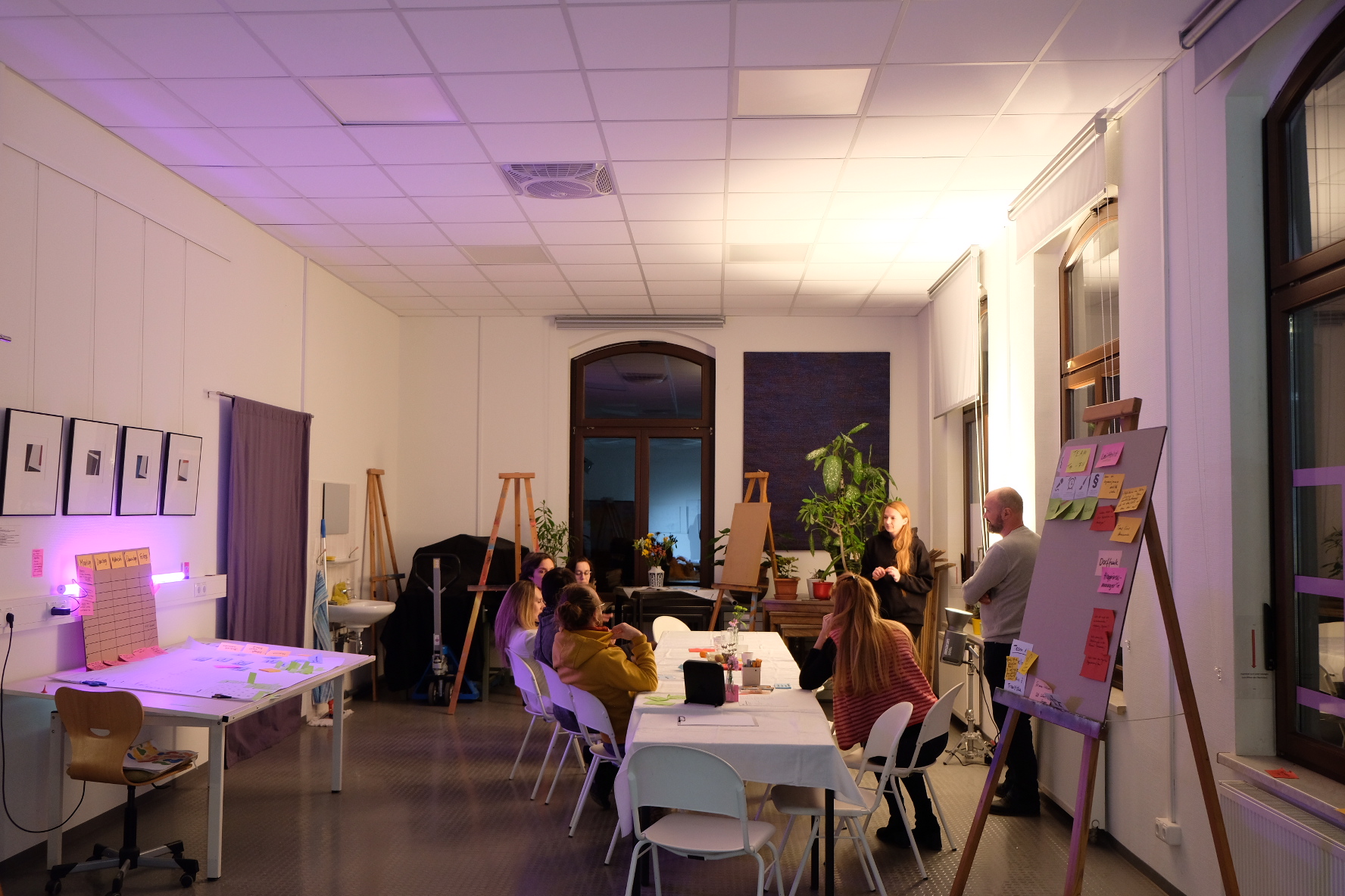 Wenn verschiedene Perspektiven unterschiedlicher Branchen zum gemeinsamen kooperativen Lösen von Herausforderungen zusammenkommen, heißt die Überschrift “Cross Innovation”: branchenübergreifende Innovationsentwicklung. Im Thüringer Cross Lab zeigte die THAK auch 2025 wieder, was passiert, wenn kreative Methoden, Interdisziplinarität und Perspektivenvielfalt zusammentreffen, wenn Thüringer Kreativwirtschaft und Vertretende von KMU anderer Wirtschaftszweige gemeinsam den berühmten Blick über den Tellerrand wagen. Unter der Begleitung von Systemdesignerin Veronika Busch vom fint e.V. und mithilfe der Design-Thinking-Methode arbeiteten die diesjährigen Teams aus Thüringen zum einen an Herausforderungen im Zuge der Unternehmensnachfolge und zum anderen an Ideen für nachhaltiges Wachstum eines Unternehmens in der Essensversorgung. In 3,5 Tagen wurden in den Künstlerwerkstätten Erfurt Schritt für Schritt die Herausforderungen analysiert, Ideen entwickelt und verworfen, bevor finale Prototypen getestet wurden. Das Cross Lab 2025 zeigte erneut: Kreativität, Kooperation und die Perspektive unterschiedlicher Branchen sind der Schlüssel für neue unternehmerische Lösungswege und Zukunftsideen. Kreativschaffende wirken dabei als wertvolle Impulsgebende, die die richtigen Fragen stellen, vom Nutzenden her denken und neue Perspektiven eröffnen. Wir nehmen euch mit ins Cross Lab 2025.